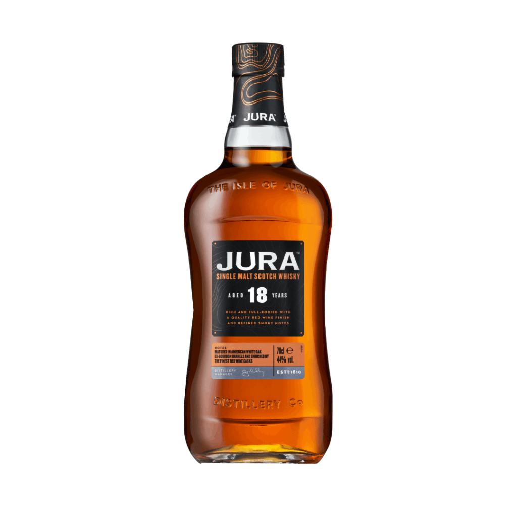 Founded in 1810 the distillery is located on a remote island 60 miles off the west coast of Scotland.The only distillery on the island and one of the oldest distilleries in Scotland.The island community of 212 islanders are dedicated to making Jura unique and the best it can be.Jura has some of the tallest still on any island distillery, they strongly believe that the taller the still the purer the spirit. Jura distinctive taste comes from blending peated and unpeated whisky to give this island malt its distinctive taste.The bottle is specially designed with its rounded edges to withstand the treacherous journey from the island to the furthermost corners of the globe.Jura has been recognized as one of the fastest growing single malt brands in the world according to IWSR Global.